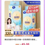 维达洗脸巾4包320抽一次性绵柔巾悬挂式卸妆大洁面壁挂擦脸巾家用【包邮】 推荐理由: 下单即享包邮! 【原价】:¥45.3 【特卖价】:¥29.9 去购买>> 淘呆呆 – 聪明购,不呆呆! 详情描述:
