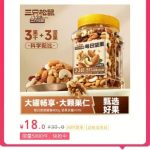 查看完整榜单>> 热卖商品 实时爆款榜 跟着买不出错 TOP1 三只松鼠 | 【罐装每日坚果400g】孕妇健康休闲零食混合干果坚果早餐整罐 推荐理由: 不添加色素、甜味剂和增味剂,保留原香滋味。罐装锁鲜,随时随地补充能量。 【券后价】18元 去购买>> TOP2 兰芝 | 兰芝雪纱丝柔修颜隔离霜防晒修饰泛红保湿持妆隔离双支 ...